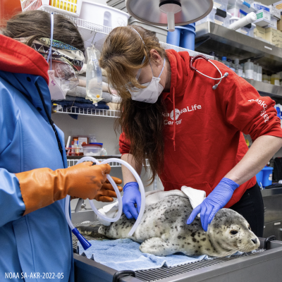 ASLC contacted the National Oceanic and Atmospheric Administration (NOAA), which oversees seal strandings. After consultation with the local stranding agreement holder for the area, Nome's local tribal consortium, Kawerak Inc., and the Ice Seal Committee (ISC), the Alaska Native Organization that co-manages ice seals with NOAA, the decision was made to transport the animal to ASLC for urgent care.